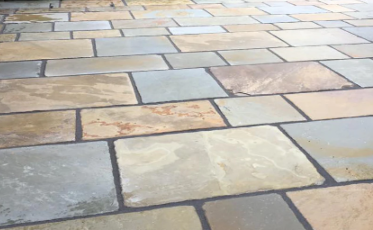 Once you have laid your flags, leave them for about six weeks to settle and seal with Azpects Sandstone 2-in-1 sandstone enhancer and sealer. This will enhance the colour as well as protects your flags.