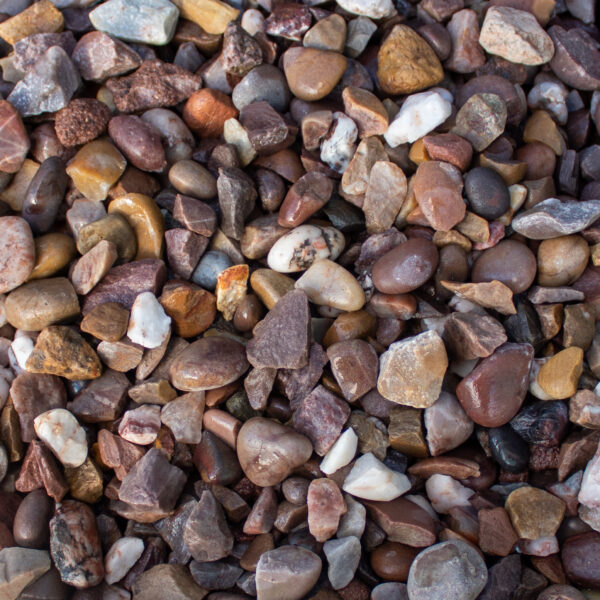 Natural gravel with a mix of semi-rounded and angular chippings, a pretty blend of pink, lilac and brown